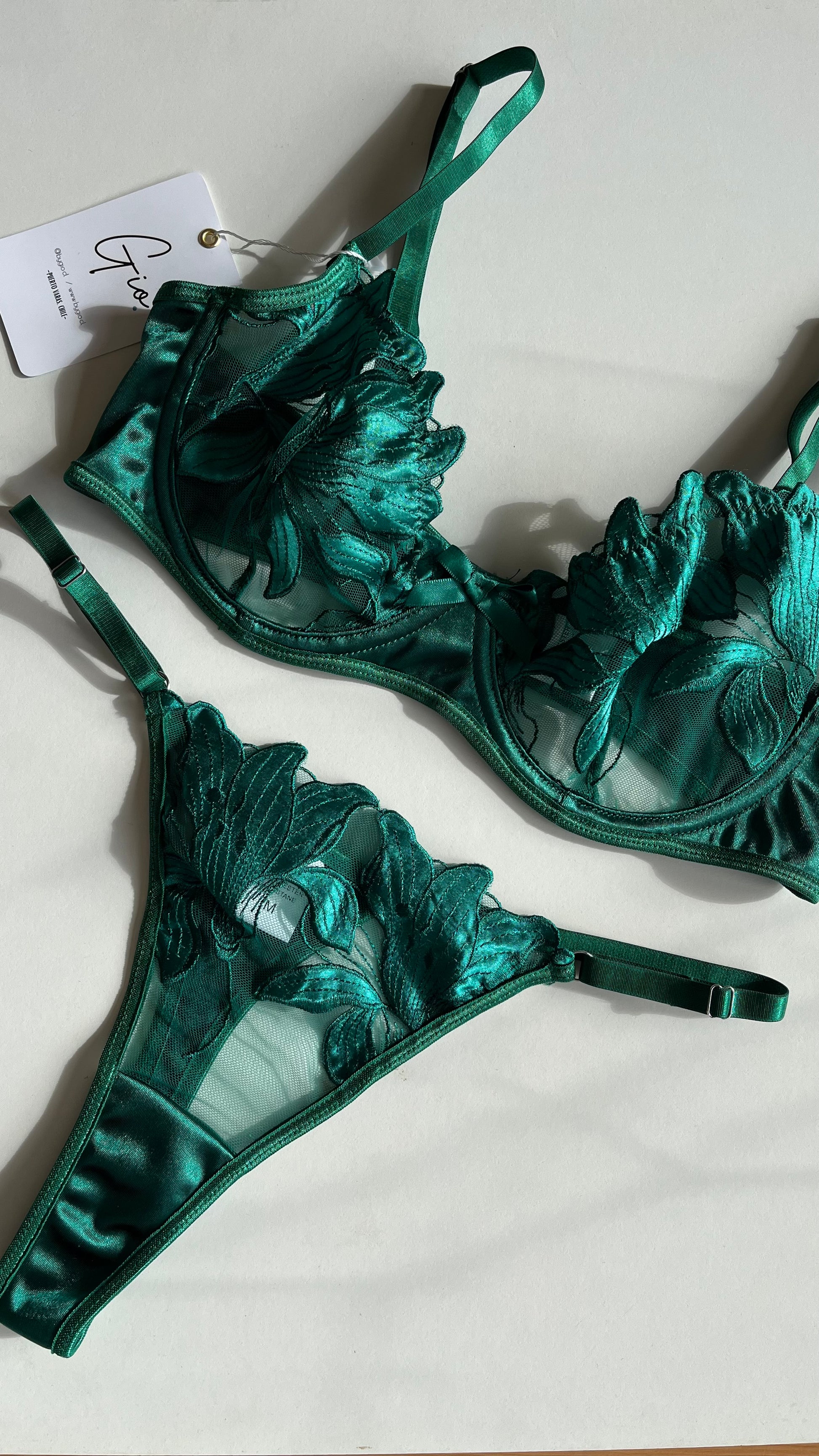 Sensual conjunto de encaje verde. Copas que moldean el busto y proporcionan un buen ajuste. Tirantes ajustables. Cierre de broche en la espalda.