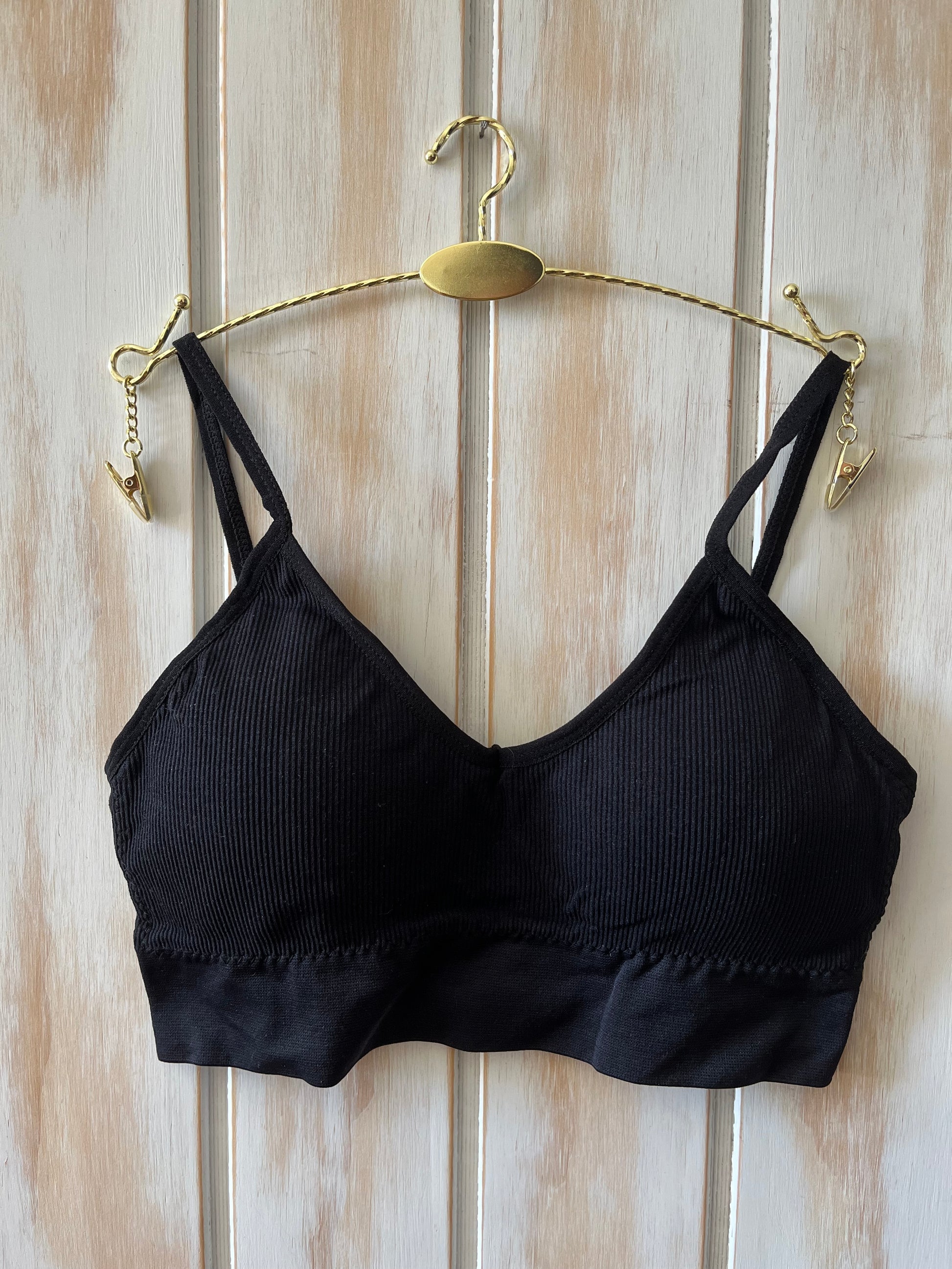 Cómodo bralette confeccionado con un mínimo de costuras, que moldean el busto y brindan una sensación suave. Tiene tirantes fijos y copas forradas con almohadillas removibles. Cerrado en la espalda, sin broche.