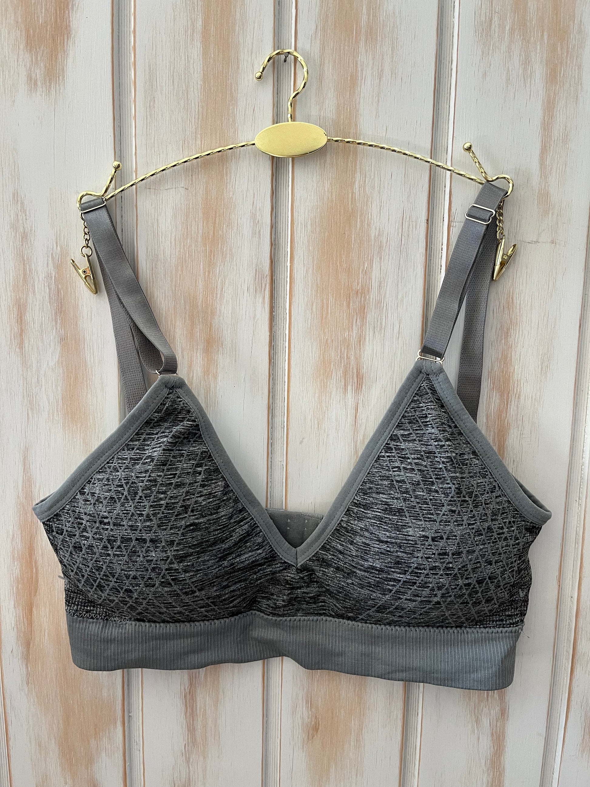 Cómodo bralette, perfecto para hacer deporte. Copas con almohadillas removibles que moldean el busto y proporcionan un buen ajuste. Tirantes ajustables. Cierre de broche en la espalda.
