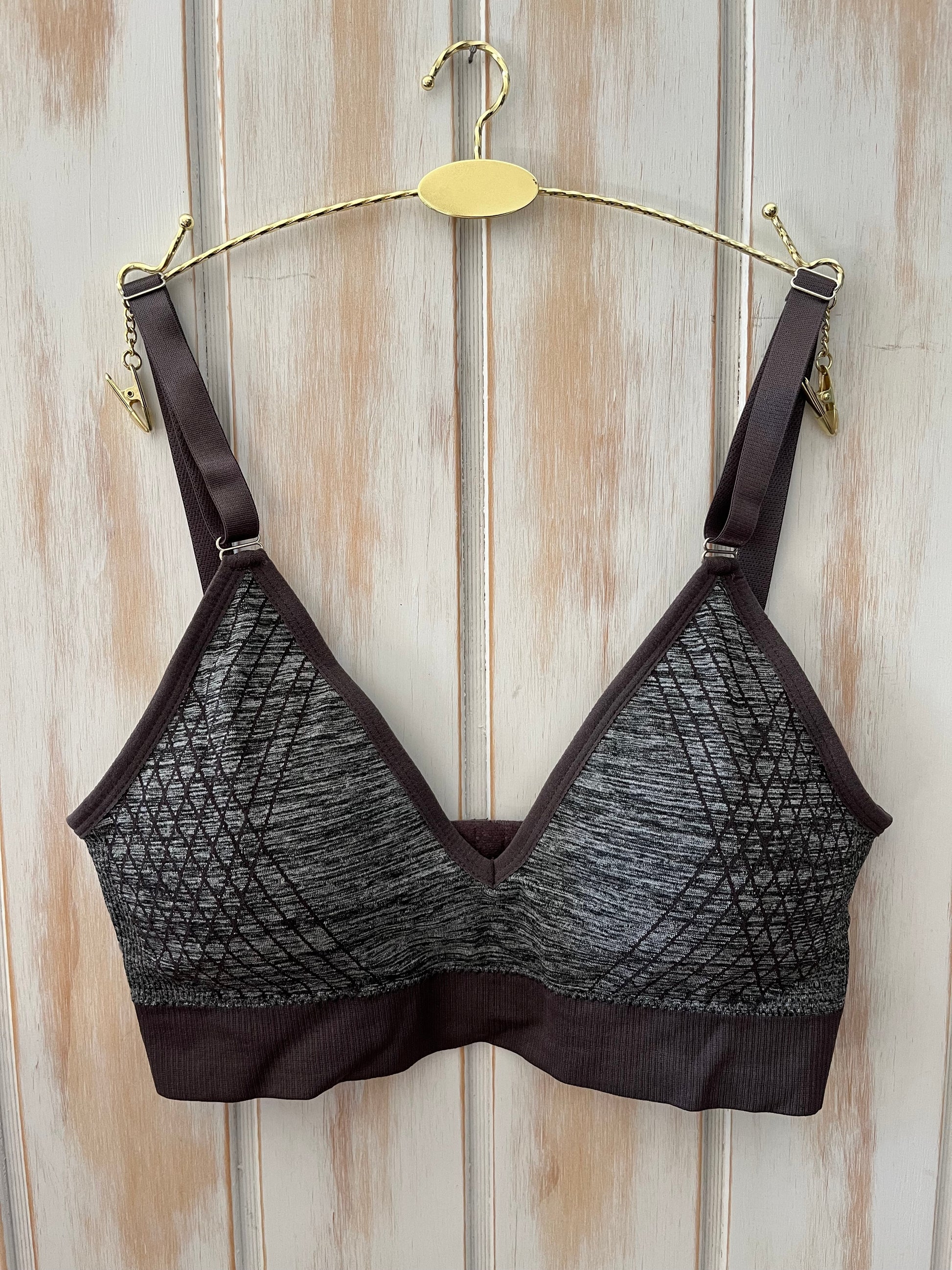 Cómodo bralette, perfecto para hacer deporte. Copas con almohadillas removibles que moldean el busto y proporcionan un buen ajuste. Tirantes ajustables. Cierre de broche en la espalda.