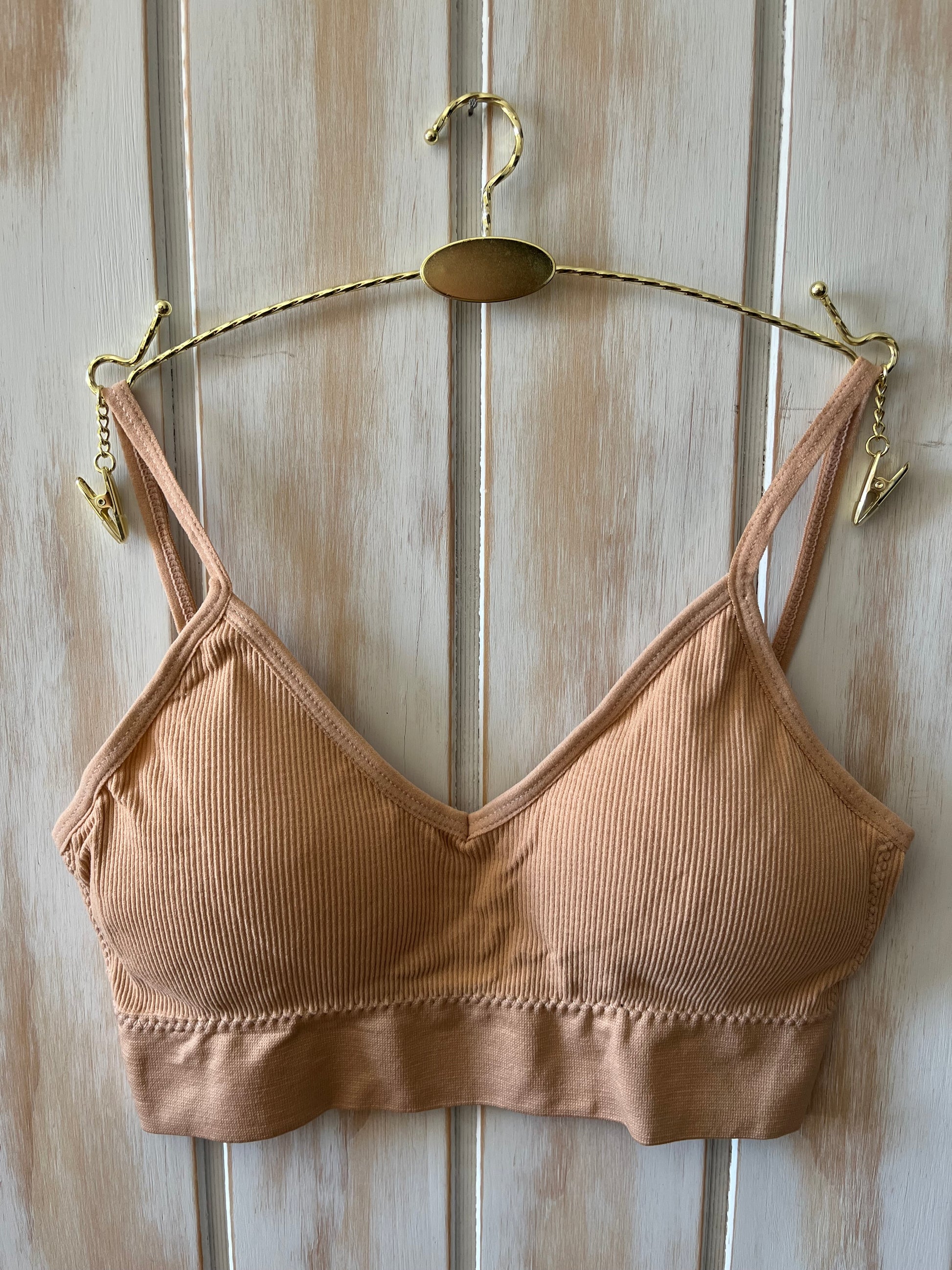 Cómodo bralette confeccionado con un mínimo de costuras, que moldean el busto y brindan una sensación suave. Tiene tirantes fijos y copas forradas con almohadillas removibles. Cerrado en la espalda, sin broche.