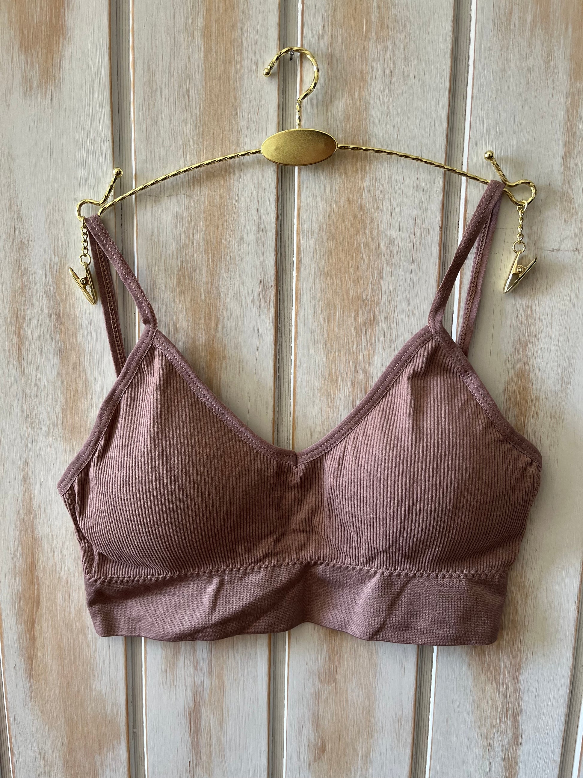 Cómodo bralette confeccionado con un mínimo de costuras, que moldean el busto y brindan una sensación suave. Tiene tirantes fijos y copas forradas con almohadillas removibles. Cerrado en la espalda, sin broche.