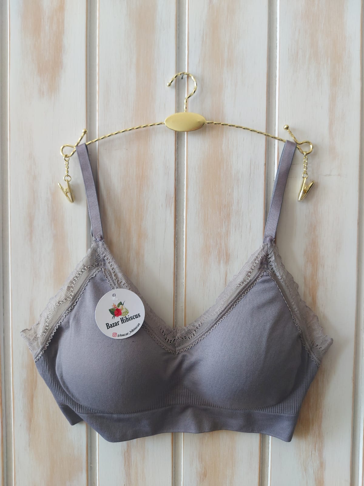 Hermoso bralette con ribetes de encaje. Copas con almohadillas removibles que moldean el busto y proporcionan un buen ajuste. Tirantes ajustables que se pueden cruzar en la espalda. Cierre de broche en la espalda.